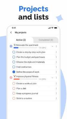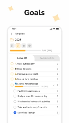 TaskUp의 강력한 프로젝트 관리 기능으로 복잡한 목표도 손쉽게 달성하세요. 거대한 프로젝트를 명확한 시작 및 종료 날짜를 가진 하위 프로젝트로 세분화하고, 각 작업을 다시 관리하기 쉬운 하위 작업으로 쪼개어 진행 상황을 정밀하게 추적할 수 있습니다. 세계적으로 인정받는 GTD(Getting Things Done) 방법론과 효율적인 시간 차단(Time Blocking) 기술을 TaskUp에 적용하여, 아이디어를 포착하고, 명확히 하고, 정리하며, 성공적으로 완수하는 완벽한 워크플로우를 구축하세요. 장기적인 목표 설정부터 달성 과정까지 모든 단계를 TaskUp이 함께하며 당신의 동기를 지속적으로 부여합니다.