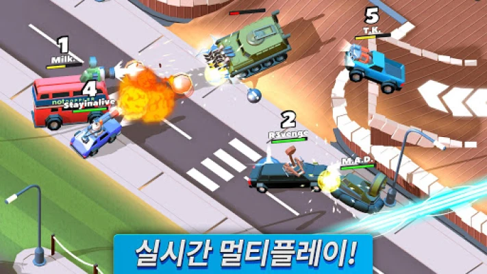 다양한 전술을 구사할 수 있는 8가지 독특한 전장에서 치열한 전투를 경험하세요. 평범함부터 전설 등급까지, 70가지가 넘는 개성 넘치는 자동차들을 잠금 해제하고 30가지 이상의 독창적인 스킨으로 나만의 개성을 뽐내십시오. 페페로니 스킨 캠핑카처럼 예측 불가능한 조합으로 상대를 놀라게 할 수도 있습니다. 화염방사기, 강력한 대포, 심지어 거대한 투석기까지, 16가지의 업그레이드 가능한 파워업으로 무장하여 적들에게 압도적인 파괴력을 선사하고 궁극의 승리를 쟁취하세요.