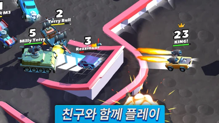 자동차 대전쟁은 실시간 멀티플레이어 액션을 선사합니다. 자신의 자동차가 파괴되기 전까지 최대한 많은 크라운을 모으는 스릴 넘치는 목표에 도전하세요. 치열한 전투에서 승리하며 최고의 자리에 오르세요.