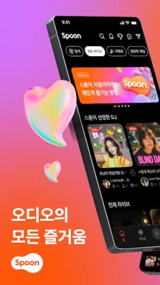 스푼: 오디오 라이브는 목소리로 즐기는 크리에이터 라이브 콘텐츠 플랫폼입니다. 실시간 오디오 방송을 듣고 채팅으로 소통하며, AI 맞춤 추천과 DJ 구독으로 나만의 오디오 세상을 만나보세요. 다양한 이벤트도 놓치지 마세요.