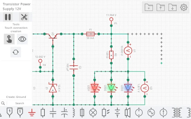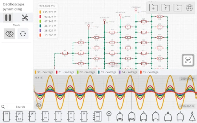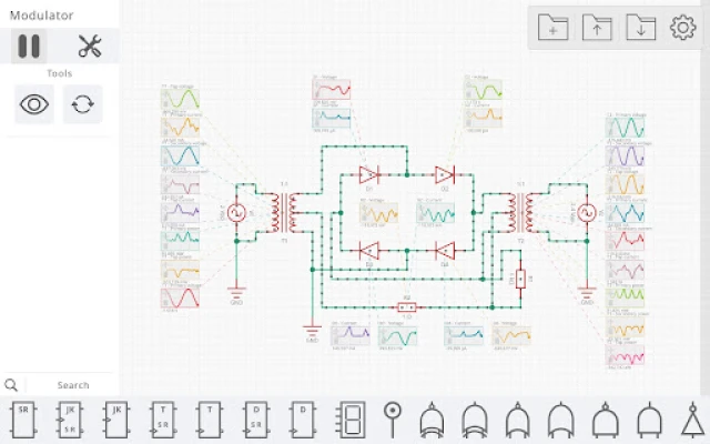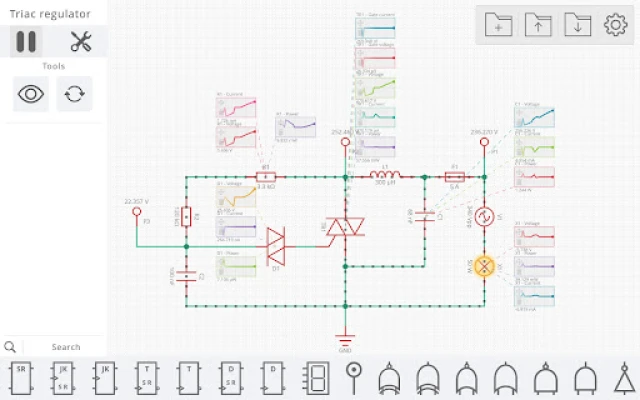 전압원, 스위칭 소자, 수동 부품, 다이오드, 트랜지스터부터 다양한 논리 게이트와 디스플레이에 이르기까지, Simulatic이 제공하는 풍부한 구성 요소 팔레트는 여러분의 창의력을 무한히 확장시켜 줄 것입니다. 완성된 회로 설계는 개인 라이브러리에 저장하고 즐겨찾기에 추가하여 효율적으로 관리할 수 있으며, 언제든 다시 불러와 작업을 이어갈 수 있습니다. Simulatic은 광고 없는 깔끔한 환경을 제공하여, 방해 요소 없이 오직 회로 설계와 심층적인 분석에만 온전히 집중할 수 있는 최상의 경험을 보장합니다.