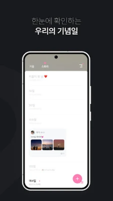 매일매일의 소소한 행복부터 특별한 이벤트까지, 날짜별 스토리 기록으로 두 사람의 발자취를 남겨보세요. 각 이야기에 최대 3장(프리미엄 회원은 30장)의 사진과 상세한 캡션을 추가하고, 서로 댓글을 주고받으며 추억을 공유하고 간직할 수 있습니다. 중요한 기념일이나 상대방의 생일을 홈 화면 위젯으로 한눈에 확인할 수 있어, 언제나 사랑하는 사람과의 연결을 느낄 수 있습니다.